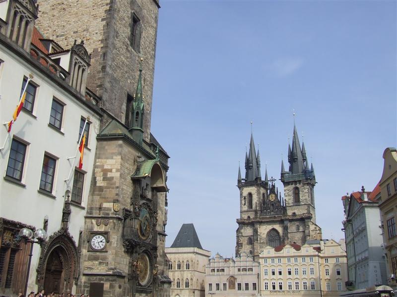 Old Town Square with Old Town Hall's Astronomical Clock and Gothic Tyn Church
